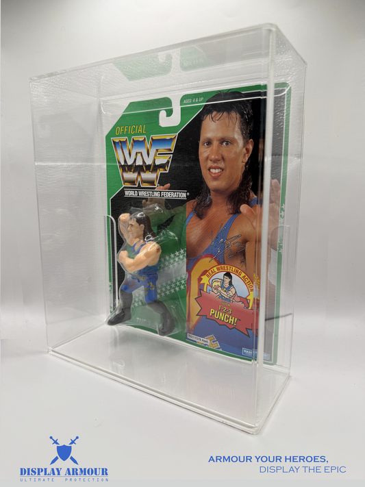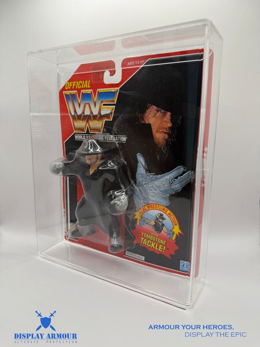 These are the go-to Display Armour cases our customers reach for first – the same 4 mm UV acrylic protectors you’ll see around WWF Hasbro, TMNT, MOTU, Star Wars and more in the photos below. Each case is precision-engineered for its card style, giving your grails a rigid, crystal-clear shell that looks as good as it protects.